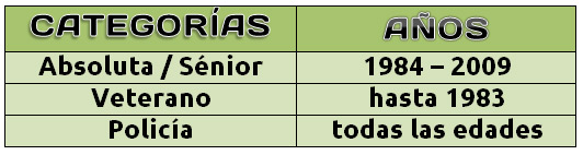 TROFEOS: a los tres primeros clasificados de cada categoría y a los tres primeros Policías Nacionales, ambos sexos.
