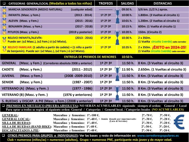 RECOGIDA DE DORSALES: el viernes 6 de marzo de 17.00h. a 20.00h. en el ayuntamiento. O el día de la prueba de 08:15h. a 11:15h.